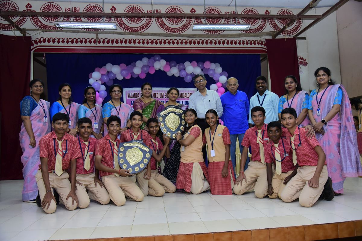 On 17th November 2025 our Nalanda English Medium School organized a program on account of children’s day. DR. K. Mohan Pai President of SSPA , B.R. Shenoy former President of SSPA , Mrs.Bhagya.S.Shet PTA President, Mrs.Kavya Bhat PTA Secretary were the guests of honour. The program started with the prayer followed by a motivational speech by DR.K.Mohan Pai . Students from LKG to class10 received certificates and small awards for their achievements in sports, academics and extra curricular activities from our guests. Students showcased their talents through dance performances. Tiger dance was the highlight of the day. A power packed dances was performed by the teachers .The programme concluded with the singing of National Anthem.