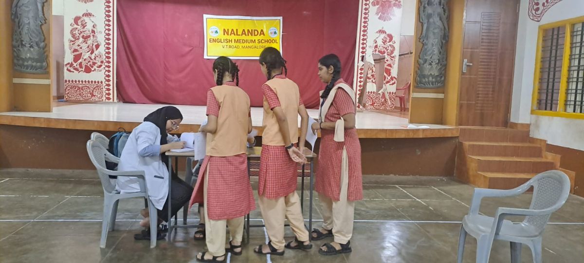 Nalanda English Medium School V. T Road Mangalore held free eye check up camp for students, teaching and non teaching staff on 30th June 2025. It was organized by Prasad Netralaya . A team of Doctors visited and checked the students.